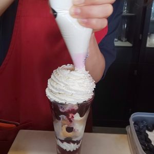クリームをぶわーっと、それで終わりではなくて、見えなくなるけどチョコレートがかけられます。