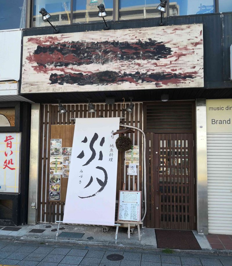 お店は「水月」の大きな看板が目印です。