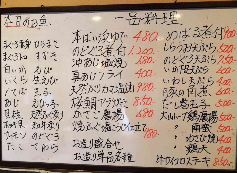 本日のメニューなど、仕入れによってメニューは変わります。