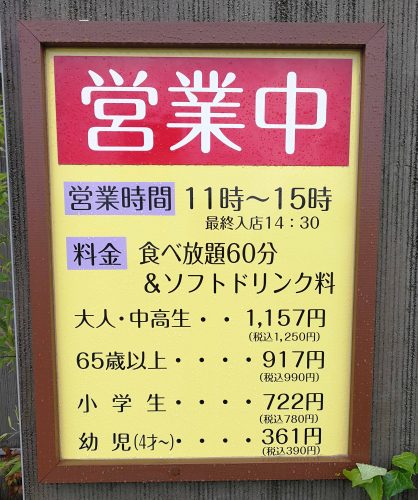 食べ放題60分とソフトドリンクが飲み放題です。こちらはお昼11時から15時まで。