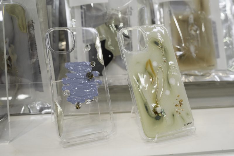 1つ1つ手作りされているので、世界に1つのデザインスマホケース。立体感があり、キラキラ光るジュエリーが個性的です。