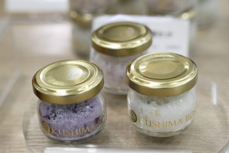 写真は新鮮なバラとマイルドな国産海塩をブレンドした生バラ塩「ローズソルト」。