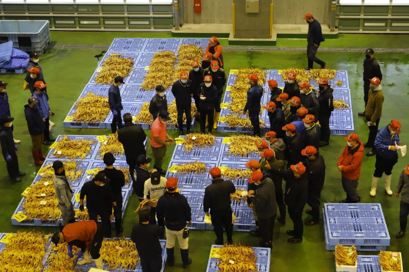 セリが行われるのは、漁期(9月~翌年5月)の日曜日および、悪天候日を除く午前5時30分から午前6時30分頃。