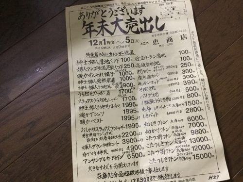 大売出しは年末と創業記念日の10月の年2回。今年は特に寝具類が破格値だそうです。