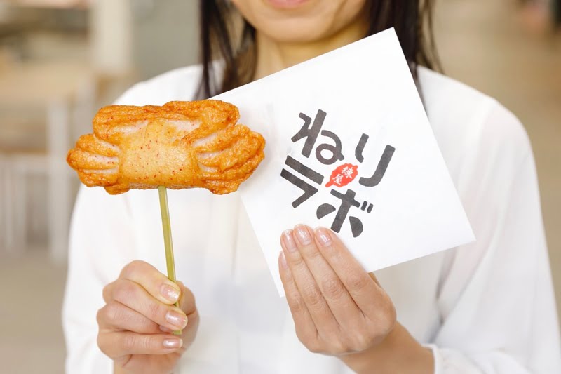 境港名産の紅ズワイガニを使用した「かに姿かまぼこ」をその場で揚げた天ぷらも販売。食べ歩きのおともにもぴったりです。