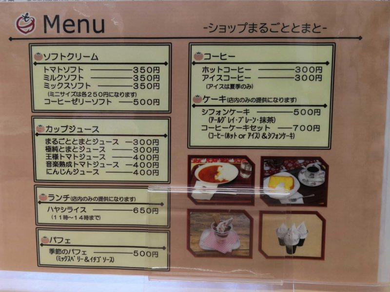 飲食メニューもあり、トマトソフト、ミルクソフト、ミックスソフト、