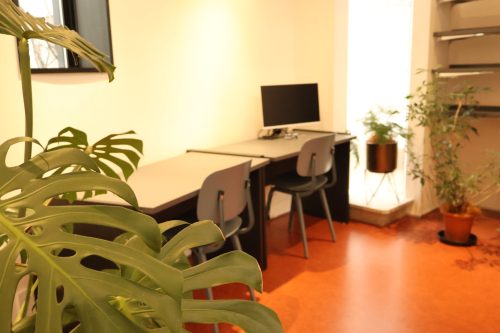 共同スペースではあるのですが、いくつか区切られたスペースもあるので、集中したい時はこちらの壁際の席を利用してもいいかもしれませんね。
