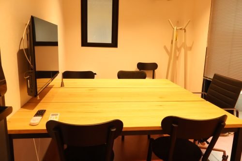 こちらがミーティングルーム。防音の部屋となっておりZoom会議などに使用されることも多いそうです。(1時間1650円)