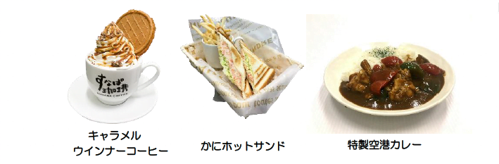 看板メニューの「サイフォン式 砂焼きコーヒー」の他、特製の「空港カレー」まで、さまざまなメニューがあります。(空港への出店は鳥取空港に次いで2店舗目)