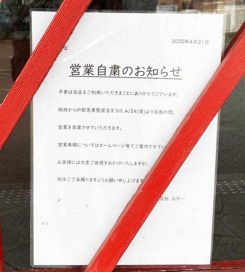 営業自粛のお知らせがそのまま貼ってありました。