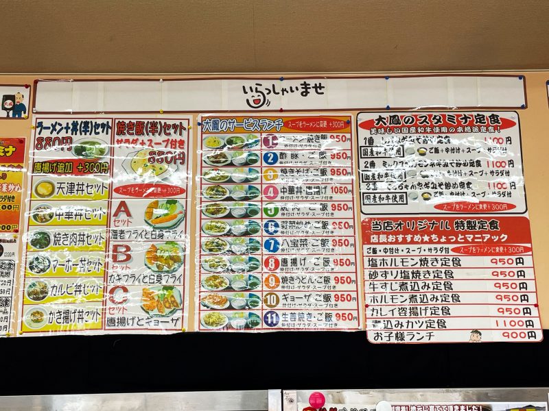 「中華飯店 大鳳」はボリューム満点のメニューが特徴のお店。メニューの豊富です。