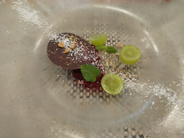 デザート:二種類のブドウのゼリーに旬のマスカットを添えて
