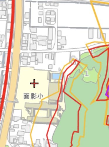 今回面影小学校で防災教育が行われた理由は、小学校の体育館および校舎東側が、土砂災害警戒区域内に位置しているためです。