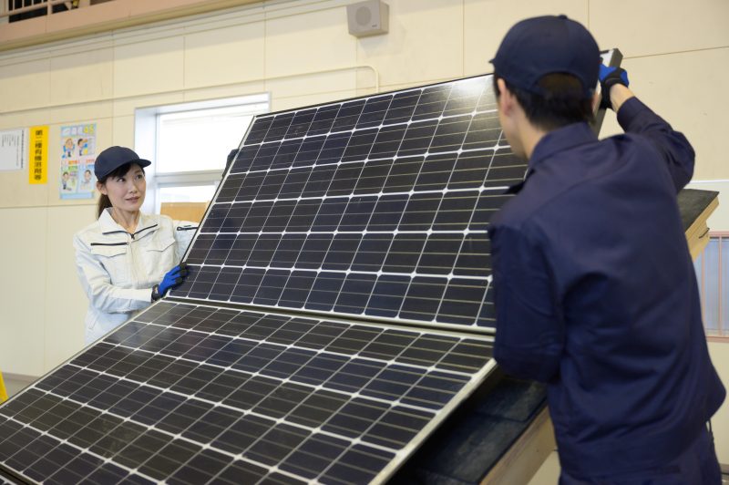 電気設備施工科は、電気工事の基礎や、太陽光発電システム施工、オール電化施工、ドローンを活用した設備の保守点検、給排水設備を勉強します。