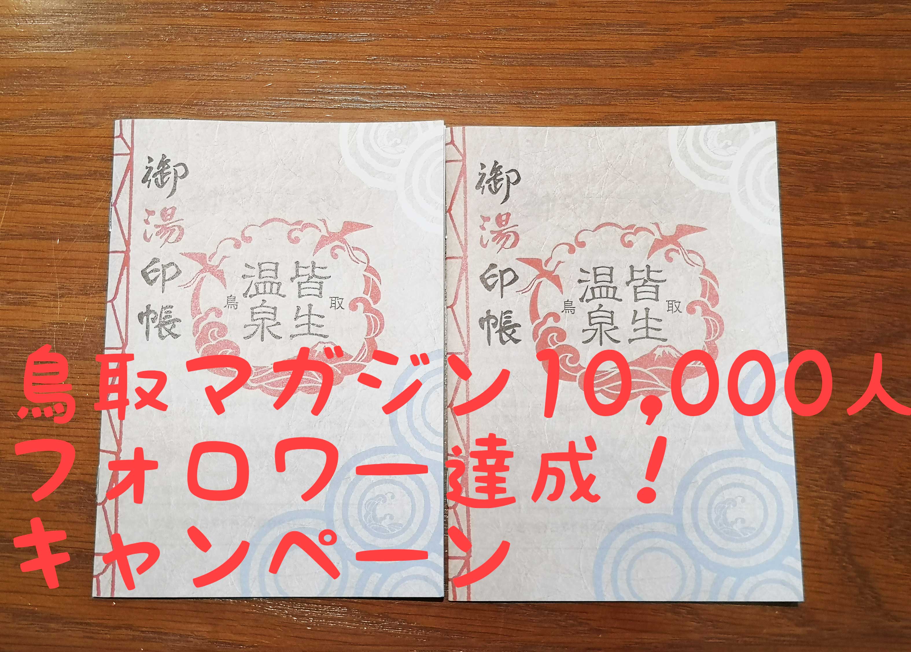 鳥取マガジンインスタグラムをフォローし、「鳥取マガジン10,000人フォロワー達成!キャンペーン」の投稿にいいね!してくださった方のなかから、抽選で2名様に「御湯印帳」をプレゼント!